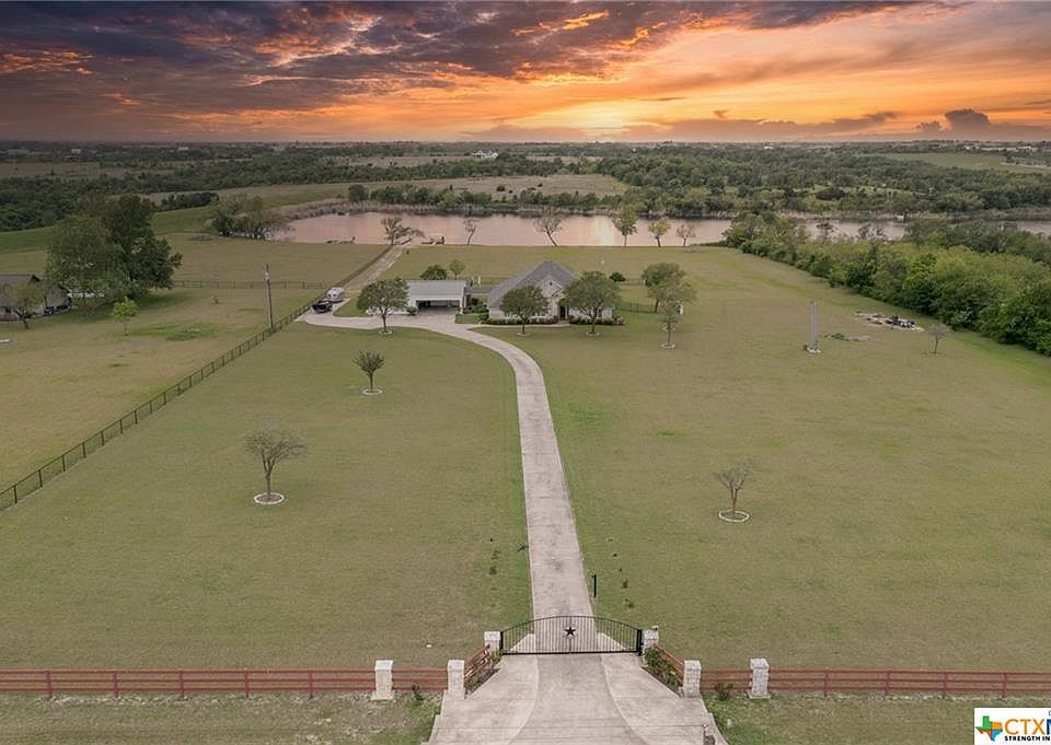 This is where dreams come true, especially if you love peaceful sounds, country breezes, fishing, hunting, swimming, entertaining, and still love easy access to shopping/schools/work. This 12.1 acre property is such a cool place! As you walk inside, you'll see expansive views of the negative edge pool and a shared stock tank that provides over 362' of great fishing/hunting fun! You'll also enjoy your very own private dock, so grab your fishing rod and cast away!! Back in the house you'll find a huge kitchen with all the amenities for being the hostess with the most-ess! Open concept with great flow and bonus, the house is spray-foam insulated. If you need additional living space, then just pop outside to the amazing Man-Cave or She-Shed (solar panel powered)! Talk about a shop galore! This 1,875 sq ft room is temperature controlled and has a full bath and tons of storage! Plenty of space to store your toys and R/V and boat parking. Private gated entrance is just the cherry on top!