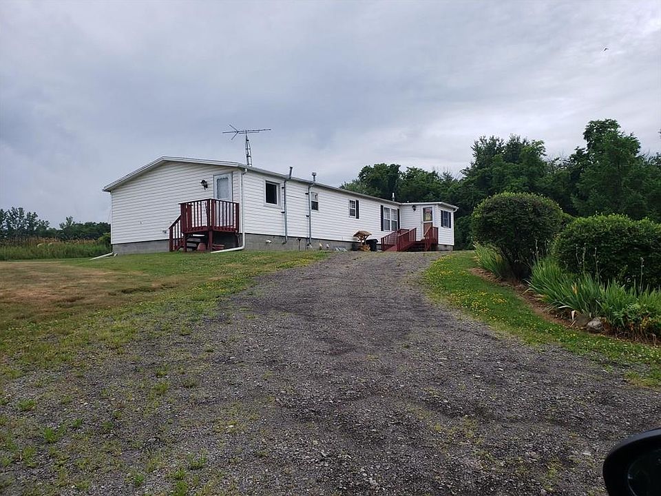 This 3/4-bedroom/2-bath manufactured ranch is located in a very private setting on 64.5 acres. There are 30 acres of open farm land and 34.5 acres are wooded that haven't been timbered in 35 years. It features large oak eat-in kitchen with pantry and lots of cabinets and counter space; living room with sliding glass door to 14 x 15 sunroom; master bedroom with master bath, walk-in tub, full wall closets; den/bedroom that could be the 4th bedroom; full dry walk-out basement with French drains and high ceiling; newer Trane furnace, central air, tankless hot water tank. This property would be great for hunting, 4-wheeling, hiking, horseback riding. Call soon.