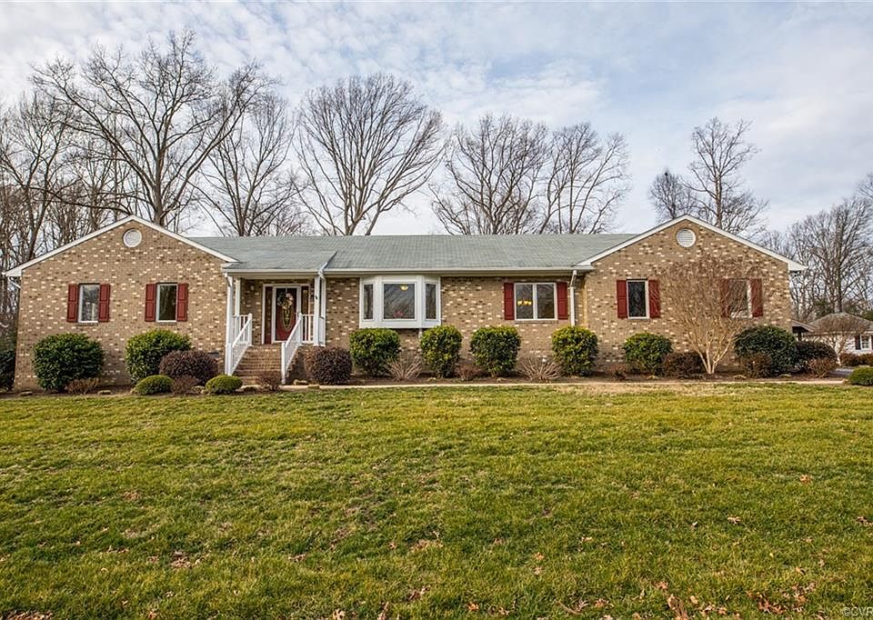 Stunning brick ranch located near Hull St and Courthouse Rd in Chesterfield County. Beautifully landscaped, level lot, this home is one not to miss. Fully renovated eat in kitchen boasting custom cabinetry, granite counters, center island, double oven, stainless app, recessed lighting, tiled backsplash, & tiled floors. Formal living & dining rooms w detailed moldings, bay window, & chandelier (both rooms have hardwoods underneath carpet). Spacious family room with wall to wall carpeting, brick gas FP, ceiling fan, built ins, & open flow into the kitchen. Florida room is right on the other side of family room w access to large rear deck with ramp that also overlooks private backyard. Master suite includes two closets (one a walk in), ceiling fan, and private bath w tiled floors, walk in shower, single vanity. Two other spacious secondary bedrooms with large closets, fans, & crank out windows. Other features include spacious laundry room, two car side entry garage, double wide paved drive, pull down attic for storage, detached shed, carport, & much more. Conveniently located to it all including all major highways and less than 15 minutes from downtown Richmond. Must see!