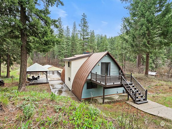 Need elbow room? Escape to this mountain getaway and enjoy wonderful privacy across 2.5 wooded acres including access to Chumstick Creek. With ample space for projects, gardening, and animals, this 2900 sqft, 3-story home offers 4 bedrooms, 2.5 baths, and woodsy views in every direction. Relax on one of multiple decks and patios while listening to the songbirds or watching wild turkeys frolic in the yard. Discover endless possibilities in the massive detached garage/workshop, a 1440 sq ft playground for DIY enthusiasts. It’s fully insulated and the woodstove keeps it comfy in the winter months. Instant access to hundreds of miles of forest service roads for hiking, mountain biking, or exploring. High speed fiber optic internet available.