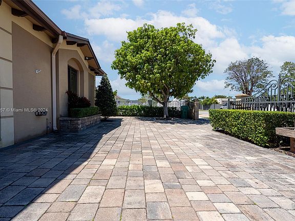 This corner One Story Single Family Residence features 4 bedrooms and 3 full bathrooms and Office Space/Den. Mediterranean Style. Formal Livingroom, Formal Dining room and Family. Tri-split bedroom plan. High ceilings. 8 Ft. doors, Crown Molding, Impact Glass Windows. Oversized bedrooms. Wood California closets in two bedrooms. Gourmet kitchen with wood cabinets, stainless steel appliances and gas stove. All bathrooms with walking shower. Great patio with pool and tiki bar. Saltwater system for the pool and Full House Generator. Circular gated Driveway. NO HOA. Close to schools, dining, shopping, major highway. Schedule your appointment today.