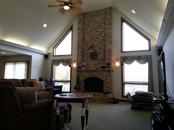 Youll say WOW when you enter this beautiful home. Living room has vaulted ceiling, open floor plan & brick fireplace. Kitchen has 2 eating areas, oak John Martin cabinets, center island & closet pantry. Main floor laundry with extra storage. The master suite has tray ceilings & bath with double vanity, jetted tub & separate shower. Finished basement with 9 ceilings. 43x54+23x35 Morton building with heated workshop.