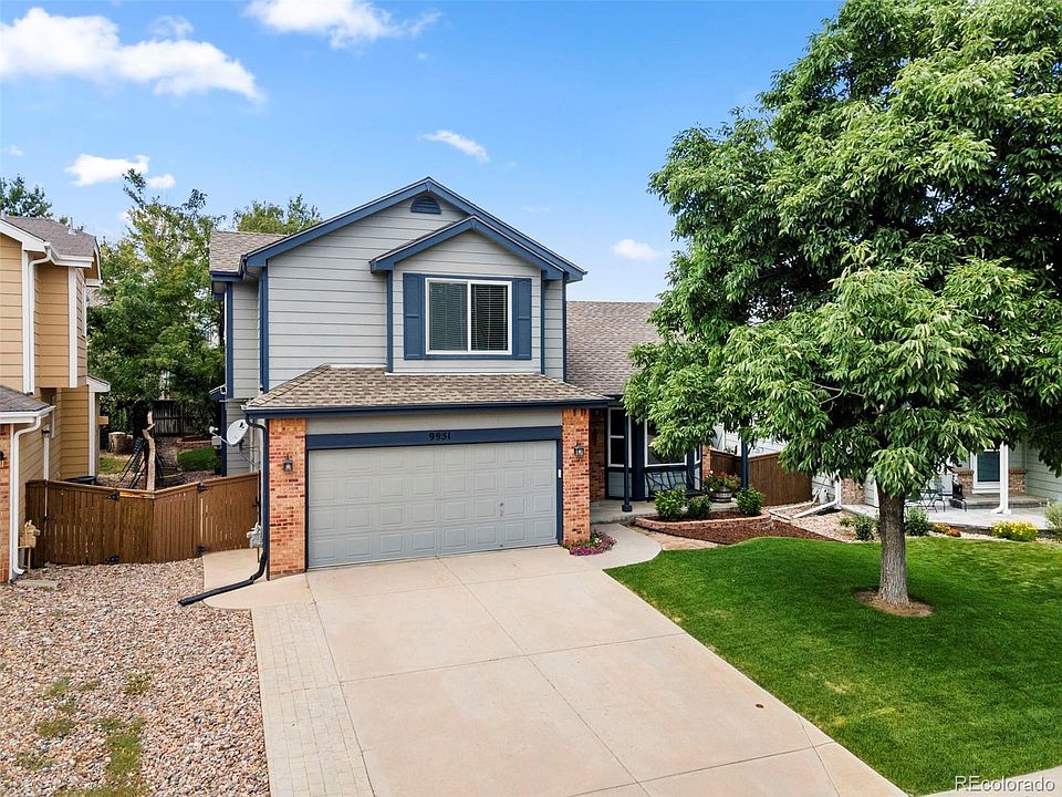Welcome to this charming two-story home located in the desirable Highlands Ranch community. With four spacious bedrooms and four bathrooms, this home boasts 2,767 total square feet of space. A new professionally landscaped front yard and flower bed invite you home with an expanded driveway and garage, which has a 220v for charging an electric vehicle. The open floor plan is perfect for entertaining guests, and the cozy fireplace creates a warm and inviting atmosphere—the spacious main floor has radiant heated tile and a newly upgraded designer interior wall paint. The kitchen features expansive counter space and a kitchen island with modern appliances, making meal prep a breeze. All popcorn ceilings have been carefully removed and retextured to fit the modern vibe of the home. Walk up the stairs on the new premium carpet throughout the upstairs. The double doors of the primary bedroom welcome you into a large, freshly painted space with a high ceiling and remote-operated ceiling fan. The primary bedroom has a functional five-piece suite for showers or soaking in the tub. The basement offers a great space for entertaining and movie nights. You can make the space work for your needs with a bathroom and a separate room. The entertaining continues with a large, newly fenced backyard, stamped patio, and a storage shed. The home has remained modern with many updates and upgrades. Easy access to Santa Fe and C-470. Light Rail station and other public transit within a 10-minute drive or walk.
