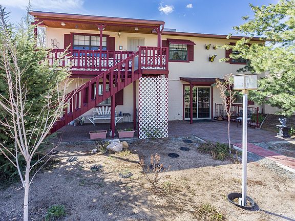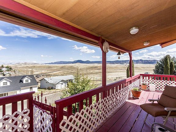 Hurry over to this updated and well maintained home with truly unbelievable forever views. Convenient Unit 20 location. Freshly painted, open kitchen and living room have both side and front deck access. New porcelain tile and carpet throughout. Huge master bedroom has it's own private deck. The bonus room downstairs has gas fireplace with thermostat, full bathroom. This spacious room could be used as a mother in law, or craft room, or family room. Private patio from bonus room has gorgeous views of the Mingus Mtns, SF Peaks, Bill Williams Mtns and grassy rolling hills. Many rose bushes, pine and fruit trees. Fenced back yard and dog run, plenty of room for RV parking. New roof and gutters. Tons of storage, built in cabinets in the extra long 2 car garage and the storage shed.