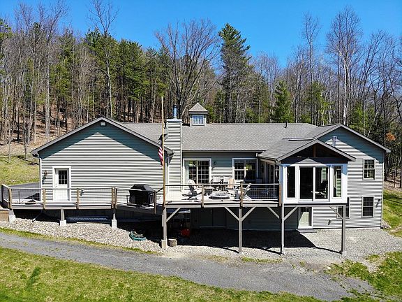 Looking for move-in-ready quality construction w/ privacy and a view? Such features aren't often found together! Nestled on a gentle sloping 12+ acres with views for miles, this Duell-built gem has it all! An open floorplan offers beautiful views from the custom cherry kitchen, vaulted living & dining rooms, & the 4 season sunroom! Ample composite multi-tiered decking runs almost the length of the home. High efficiency radiant heat & Split A/C make for year-round comfort, & the office could serve as a 4th BR. A spacious 2 car garage, & HUGE custom shed holds an additional 2 cars! Dont miss it!