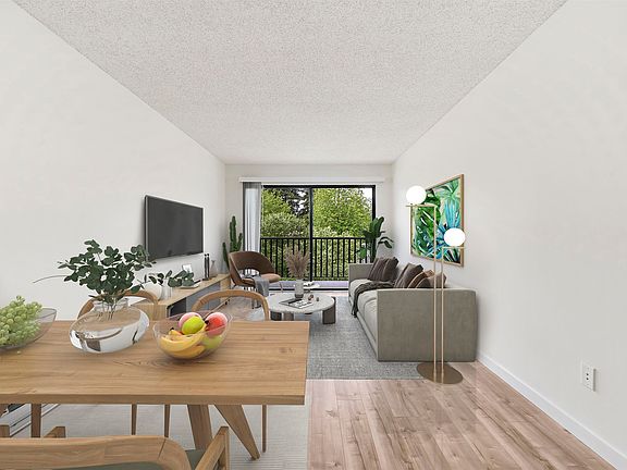 Welcome to this beautifully renovated 1 bed + den at Tall Timbers! This is in a PRIME location in Guildford! Close to everything, just 5-10 min walk to Guildford Mall, the library & rec centre, schools, etc. Just steps away from bus stop for easy transit. Plenty of parks nearby too! The renovations include white cabinets, brand new stainless steel appliances, oak laminate flooring, gorgeous bathroom vanity with plenty of storage, updated bathtub & shower. This unit offers tons of in-suite storage! Shared laundry and 1 parking stall, no locker. No rentals allowed! 1 dog (max 25lbs full grown) or 1 cat allowed. Perfect for 1st time buyers! Please note, some photos are virtually staged. Showings by appointment only, have your realtor contact us to book!
