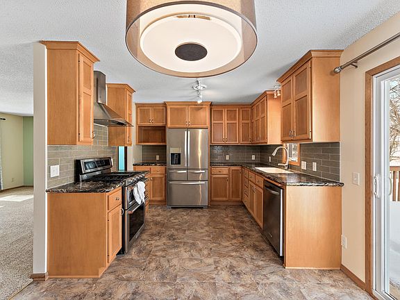 Beautiful original owner 4 bedroom/2 full bath split entry home in high demand Lakeville South's The Meadows Neighborhood! Delight in the sun-filled rooms w/ picturesque views of mature trees on your fully fenced in lot. Well-designed main level with an updated eat-in kitchen featuring beautiful maple cabinetry, stainless steel appliances, and newer light fixtures. The main level also features an oversized family room, master bedroom, full bath and additional second bedroom. Lower level opens to a family room/entertainment space, 3rd and 4th bedrooms and additional full-sized bathroom. The exterior features a concrete driveway with extension, storage shed and custom backyard pizza oven for entertaining. Steps from Lake Marion, Antlers Park, Lakeview Elementary and all of the shops, restaurants and entertainment Lakeville has to offer. Don't miss the opportunity.