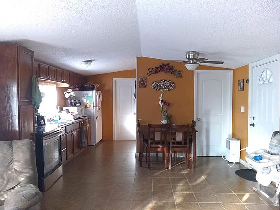 Remodeled (since 2013) single wide with new ceramic tile, wiring, plumbing, drywall, flooring, insulation, and metal roof. New electric heat pump, central air and duct work. Average electric $120/month and average water $40/month. 1-car detached garage and an attached carport. Also included is a storage shed with a poured concrete covered porch. The back of the home also has a covered porch across the back. All this privately located on a dead-end county road. Driveway is an easement to the property. Well cared for and ready to move in.