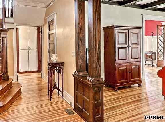 Nestled in a beautifully landscaped multi acreage, this family home has been maintained to its architectural heritage. Main floor boasts a large living rm, delightful sunroom w/ stunning views of yard and patio, updated kitchen and dining area. 3rd floor is finished as a huge bedroom and has thrilling views of Ponca Hills. Lower Level huge Rec Room area with lots of potential. Detached 3 car heated garage w/ carriage house above! Impressive and a must see! Horse Boarding Option Available. AMA