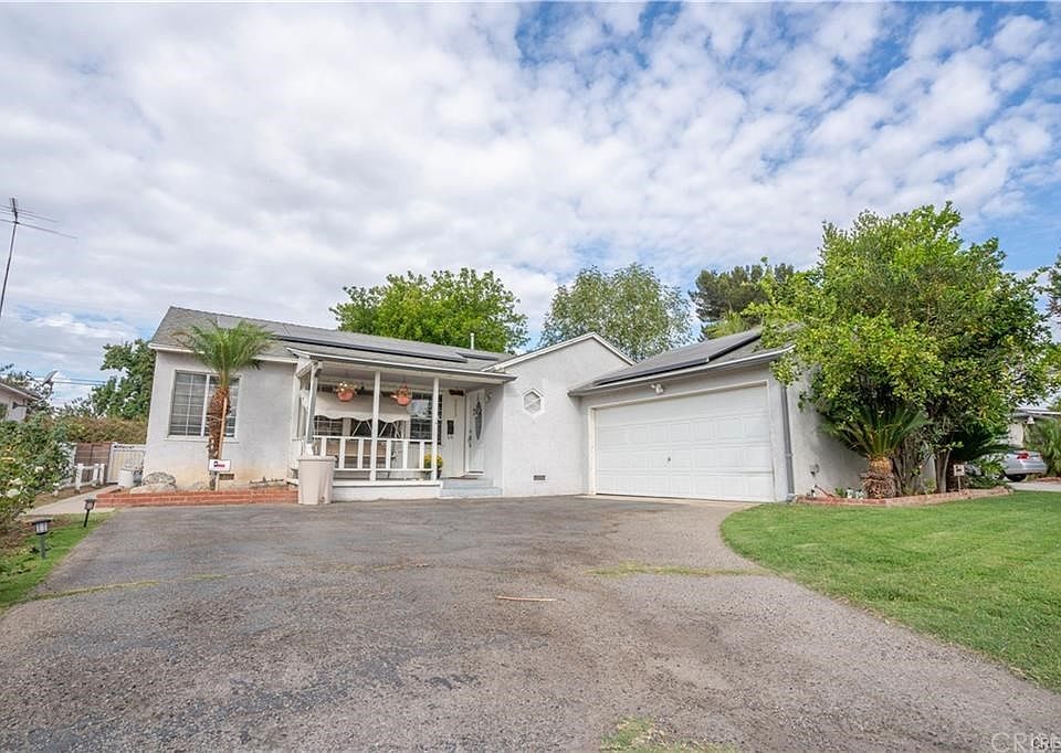 This beautiful home is nestled on a quiet street in a great Mission Hills neighborhood, here are many of it's fine features; lush front lawn, myriad of rose bushes, mature orange tree, and covered front porch enhance its eye-catching curb appeal*The custom front door swings open to flowing 1,426 square foot floor plan that is in "MOVE-IN-CONDITION" with a designer paint scheme, and a complementary blend of hardwood and tile flooring*The living room is bathed in natural light from a multitude of windows and is further enhanced by its smooth ceiling with recessed lighting, a lighted fan, and large media alcove with surround sound wiring*You'll appreciate the recently remodeled kitchen's garden window, abundant wood cabinets, double pantries, granite counters with back-splash, plus the convenience of the large adjoining dining room with lighted ceiling fan*All 3 bedrooms have lighted ceiling fans; The master suite also has recessed lighting, "His & Her" closets, direct access to the covered patio, and a sumptuously appointed remodeled bathroom with bright sky- light, dual sink granite countered vanity, soothing JACUZZI® tub and shower*A total of 2 bathrooms*Functionally located laundry*The large solar panel array and energy efficient dual pane windows will help keep your utility bills low*Central heat & air for year-round comfort*You're going to enjoy the backyard's shade trees, fenced garden area, brick side patio, and covered patio*Large driveway and 2 car attached garage.