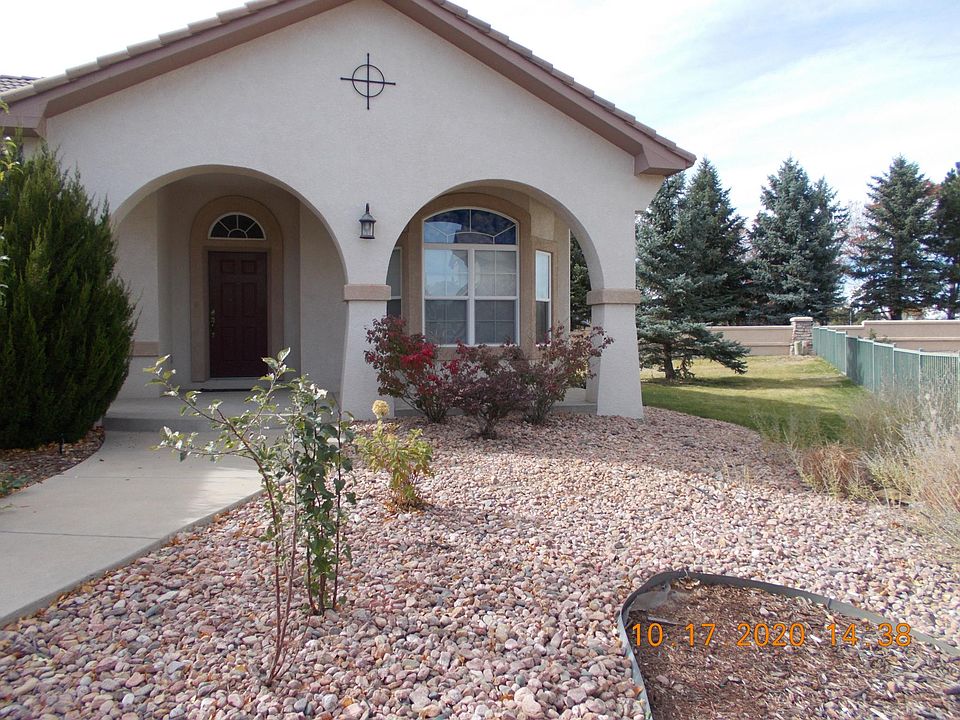 Welcome to Pine Creek This beautiful stucco home in the Pine Creek golf neighborhood features a Spanish style complete with tile roof, stucco, and beautiful arches. Large open home with fantastic kitchen, master suite, and deck views of the mountains and Pikes Peak. Hardwood Floors, Granite counters and large master suite. Located on a culdesac, just an easy walk to Pine Creek Golf Course clubhouse, schools, and parks. 3 bedroom , 2 bath and overside 2 car garage . This house offers main level living. No Pets unfenced yard ,Unfinished basement, please call to schedule showing 24 hour notice for showing.