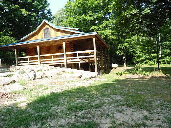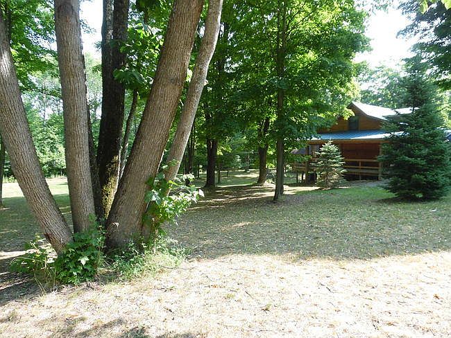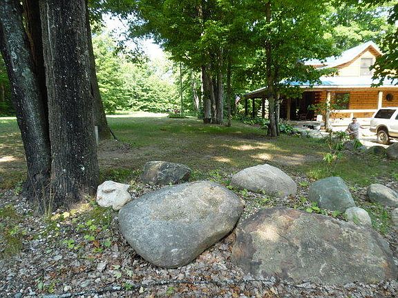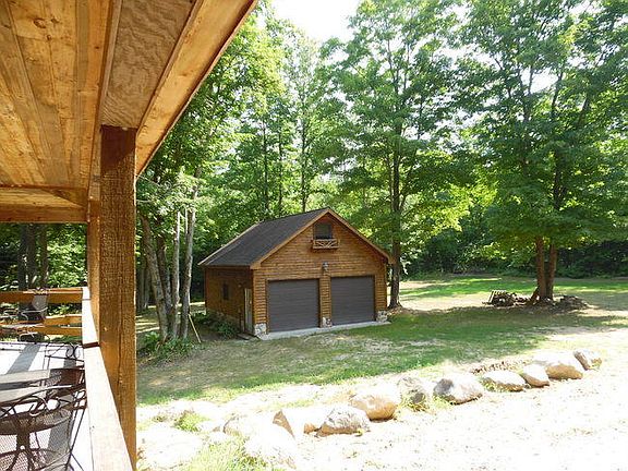 Fantastic D log home on more than 2 1/2 acres. This home has a large wrap around covered porch with recessed lighting overlooking the large landscaped lawn with huge boulder rock accents and lots of hostas and other plants. Inside has knotty pine throughout. Basement is completely finished with bedroom, bath and family room all in knotty pine. A 2 story garage with full upstairs log sided.Includes a fully automatic Generac 20 kw generator. Automatic signal to seller downstate when temperture in house is below 55. Alarm system installed.