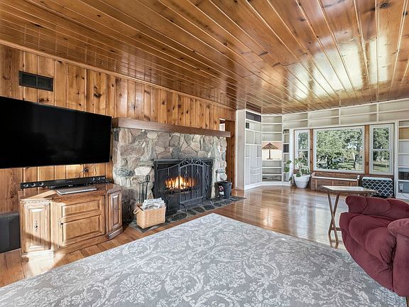 Pole barnFull basementStunning stone fireplaceScenic acresNew exterior doorsBright and airy sunroomKnotty pine accents