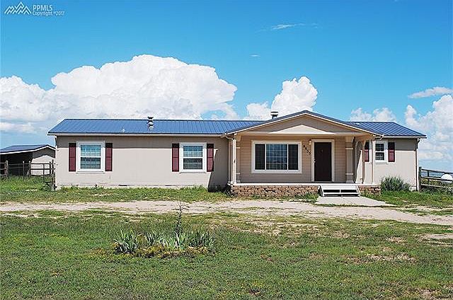 Great Pikes Peak and Mountain Views. Luxury wood laminate floors, New carpet and designer paint touches throughout this open and airy rancher. Big barn can also be the 2 car garage or shop. Front porch for those beautiful evenings. Big dining area and big kitchen with refrigerator, range/oven, dishwasher and microwave oven plus master suite with 5 piece master bath. Metal roof, vinyl windows and fully fenced plus bonus shed and lien to stall.