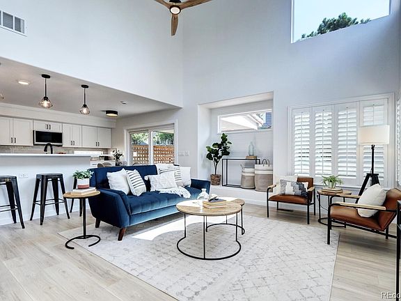 Professionally remodeled with permitted basement finish. Beautiful, modern farmhouse style Highlands Ranch home with excellent low maintenance outdoor space! Open floor plan with high ceilings maximize sqft of home. Soft close shaker cabinets/drawers, quartz countertops, new stainless appliances, custom tile backsplash. Metal stair railing and black finishes contrast nicely with the light walls and natural wood look throughout. Plantation shutters on main level and master suite. Large master suite w/ double vanities and huge shower. Basement complete with bedroom, extra living area, and 3/4 bath (4 total bathrooms!). Covered back patio with can-lights and outdoor fan are perfect for entertaining guest. New furnace and central AC. Leaf gutters and new humidity fan in crawlspace. Turn key and low maintenance living at its finest!