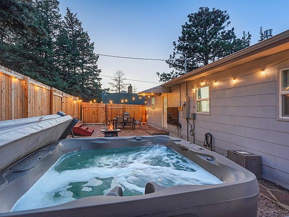 Private hot tubFront porchGas fire pitSmart refrigeratorPrivate fenced back patioSoft ambient lightTraditional wood fireplace