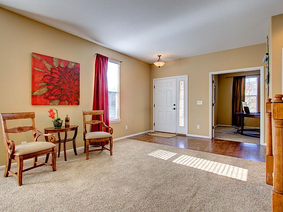 Spacious and open floor plan in Reunion. This home boasts a rare third upstairs bathroom that provides a junior suite in addition to the master suite. The gas fireplace with glass on 3 sides creates a cozy ambiance throughout the first floor and the family room right off the kitchen delivers the open floor plan you've been looking for! The first-floor laundry room has lots of room for storage in addition to a second fridge located in the space. There's also the full basement waiting for your finishing touches with its extra tall ceilings, egress windows, and roughed-in plumbing. Plenty of room for all your cars and toys with the 3-car tandem garage. This home is in a wonderful location - only 1/2 a block to the playground and close to 470, 76, 85, and DIA.