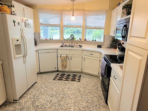Waterfront views and breathtaking sunsets! This 2 bedroom, 2 full bath (with den/office or can be a 3rd bedroom) 1400 sq foot home is partially furnished, renovated and ready for you! ROOF is 3 yrs old, NEW FLOORS, Brand New A/C and Brand New Hot Water Heater. It doesn't get any better than this! The master bedroom boasts an on-suite bathroom with a glass walk in shower. Off the Master bedroom is an extra room that can be used as an office, den or guest bedroom. Home has inside laundry, spacious bright kitchen overlooking the Lake, 2 lanais and storage shed. Another unique feature is this home's location! Corner lot. Gracing the Florida sky you will find this amazing, spacious home offering a relaxing and peaceful atmosphere. Welcome to Veranda Springs. Veranda Springs is a 55+ community and allows 2 pets under 25 pounds. Amenities include a large heated pool, hot tub, spacious clubhouse, fitness center and shuffleboard courts. Lot rent is $613 and includes trash, lawn service, basic cable and all amenities. CALL, TEXT, OR EMAIL TODAY TO SCHEDULE A SHOWING OR TO MAKE AN OFFER! WE LOOK FORWARD TO SPEAKING WITH YOU. OUT OF TOWN?!?!? NO WORRIES, WE ARE ABLE TO DO PAPERWORK REMOTELY AS WELL. FEEL FREE TO CALL, TEXT, OR EMAIL ME.
