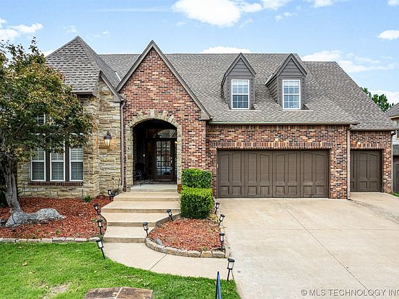 Wonderful entertainer's layout awaits you in this sought-after gated community within the prestigious Jenks School District! This home boasts numerous enhancements, including elegant marble countertops, luxury flooring, designer paint, and recently updated tile flooring and shower. The spacious formal living and dining areas seamlessly transition into a generously sized great room. With four bedrooms in total (possibly 5), this home offers dual master suites, one on the main floor and another on the upper level. Upstairs, you'll find three additional bedrooms and two bathrooms, along with a fantastic game room. The three-car garage and abundant storage space make organization a breeze. The kitchen and living areas feature an open concept design that ensures a seamless and inviting flow throughout the home.