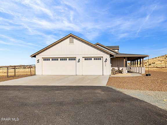 Enjoy stunning sunsets and views of Mingus Mountain from this beautiful ranch-style home, perfectly situated at the end of a quiet street for ultimate privacy. Bright, open, and thoughtfully designed, this residence blends modern luxury with the charm of a rural setting. Ideal for entertaining, the spacious kitchen and dining areas easily accommodate large gatherings. Step outside to relax on the covered front and back porches while taking in the breathtaking scenery. Additional highlights include a fully fenced property with an automatic gate, an extra-deep garage and professional window coverings.