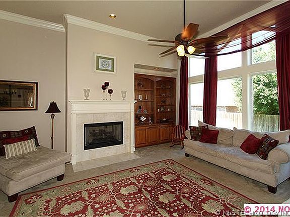 Gated community in South Tulsa, open floor plan, high ceiling, crown molding thru out. Granite counter tops, spacious laundry room w/sink/shelves. Huge study w/ventless FP and shelves. New roof, custom paint. 5th bdrm could be gameroom.