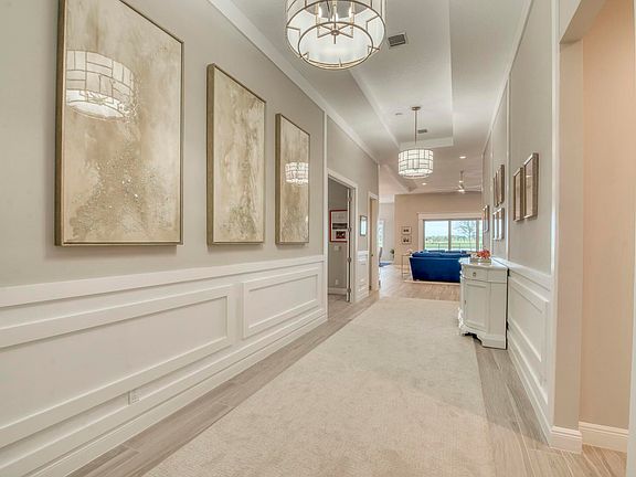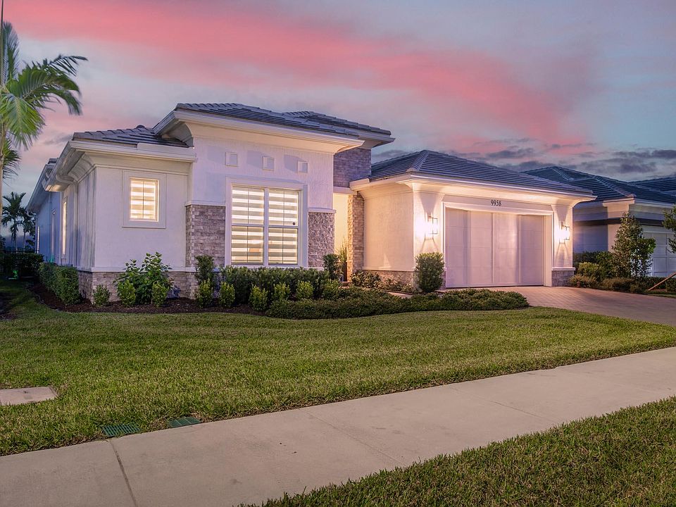 PERFECTION is found in every detail of this gem located in the resort-style 55+ active adult community of Regency at Avenir in Palm Beach Gardens. This exquisitely designed like-new 2023 built home offers privacy and breathtaking lake, golf course & nature preserve views from one of the best homesites in the community. This extended Kaley one-story split bedroom floor plan offers 3 bedrooms, 2.5 baths PLUS a flex room & a 3 car tandem extended garage. You will fall in love with this luxuriously upgraded home! Designer touches include porcelain wood-grain tile flooring throughout, decorative wooden trim on all windows, gorgeous wall millwork in entry hallway, custom Zebra shades, stunning light fixtures throughout & so much more! Live comfortably and efficiently with a 24 kW Generac whole house generator, whole house surge protector, solid core doors, natural gas, CBS construction and impact glass throughout. The open concept great room is welcoming and features large panel sliders providing immediate panoramic lake and golf course views. This grand area features a volume tray ceiling, oversized ceiling fan, and sleek floating shelves and media storage with accent lighting. Channel your inner chef in the gourmet kitchen featuring an expansive Silestone center island with stylish pendant lighting, solid wood white shaker cabinetry with brass hardware & pull out drawers, a coffee/wine bar area, and a huge walk-in pantry with custom adjustable shelving and room for additional refrigerator. KitchenAid stainless steel appliances include the 36" 6 burner commercial-style cooktop, 42" side by side built-in refrigerator, dual-temp wine/beverage refrigerator, built-in microwave at serving level, double electric convection wall ovens & a dual-speed vent hood. Entertain friends & family in the spacious dining area adjacent to the kitchen which also offers serene nature views. Experience restful nights in the primary suite which boasts a volume tray ceiling and an extended area perfect for a reading nook, sitting area or desk/office space. Wake up to peaceful lake views from this primary retreat. There is no lack of storage space in the massive walk-in closet with customized built-in solutions. All closets in the home have been customized-no wire shelving here! Luxuriate in the spa-like primary bath with porcelain shower & flooring tile, quartz countertops, dual vanities, a large soaking tub & walk-in shower with a frameless glass enclosure with storage niche. Your guests will be comfortable in the 2 guest bedrooms located in a private section of the home which share a Jack & Jill bath with 2 vanities and walk-in shower. The flex room/den/office doubles as a convertible 4th bedroom with a built-in queen Murphy bed and storage solutions. Step out through the wide sliding glass doors into the outdoor oasis. Inviting & spacious, this area boasts an extended covered lanai with 3 remote-controlled motorized hurricane shutters providing extra storm protection, a TV mount, extended patio pavers, a fully fenced backyard and lush tropical landscaping. The views are enchanting from this relaxing outdoor living area perfect for lounging & entertaining! The 3 car extended tandem garage offers the entire attic space built-out with storage flooring and a heavy duty aluminum access ladder, a double-insulated garage door with additional hurricane support bars, insulated & drywalled interior walls, additional spray foam insulation, a 220v electric vehicle charger plus a mini-split AC system! Regency at Avenir is a luxury 55+, active-adult community in Palm Beach Gardens offering exclusive resort-style amenities and a low-maintenance lifestyle. The fun-filled social opportunities are endless with events planned by your on-site lifestyle director. Residents enjoy a wide variety of resort-style amenities at The Pearl, the residents' exclusive clubhouse and amenity center, including a resort-style swimming pool and spa, state-of-the-art fitness and wellness center, yoga studio, tennis, pickleball, bocce ball, golf simulator, art room with kiln, ballroom, cafe, and an outdoor amphitheater. From cocktail parties, card tournaments, and dinner clubs, to continuous learning and philanthropic pursuits, the amenity center serves as a gathering place to connect with your neighbors and spend time with friends and family. Also planned for Avenir is a Town Center with restaurants & shops, extensive walking trails, a 20 acre working garden/farm and a dog park. The convenient location offers access to arts & entertainment, beaches, nature preserves and parks, walking & bike trails, dining, shopping and golf. Live your best life here!