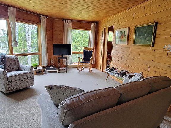 PRICE JUST REDUCED! Unique Octagon Home on beautiful Twin Lakes. Property features 275 feet of waterfront and 1.7 acres to explore and enjoy the wildlife. Large open concept living area, two bedrooms, 2 1/2 bath. and attached garage. Home has a full basement with high ceilings and door to outside is just wanting to be finished into a family room or man cave.