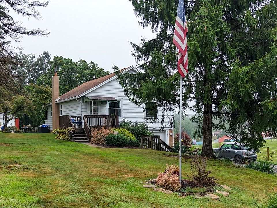 This 3 bedroom, 1 bath home in Plum features numerous updates and great functionality! The spacious living room is filled w/ natural light & connects to the dining area & kitchen, allowing for an open concept floor plan. The stunningly updated kitchen features granite counters, deep drawers for storage, recessed lighting, farmhouse sink, custom coffee bar w/ more cabinet space, center island, & pantry. Relax on the enclosed porch which overlooks the large backyard & neighboring farm. The oversized main bath has a custom vanity, linen cabinet, & tile tub surround w/ glass doors. The primary bedroom is located on the main level. Upstairs, you will find the 2nd bedroom along w/ the third which is a captive room, and could be used as the 3rd bedroom, office, dream closet or whatever suites your needs! While unfinished, the clean basement has a workshop area, laundry, storage, & integral garage. Newer 200-amp panel, windows, LTV flooring, appliances, and more! Home warranty included!