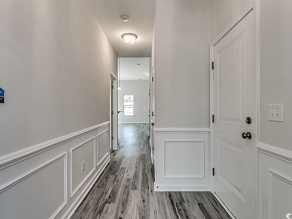 This Callaway is a one-story plan with three bedrooms and two bathrooms on a stunning private wooded homesite with covered porch and patio complete with gas line for grilling and entertaining. Two identical sized guest bedrooms are situated at the front of the home and share a full bath located in the main hallway. The kitchen offers a GE gas range, upgraded white soft close cabinetry, white tile backsplash and quartz countertops. The large center island overlooks the great room and eat-in area. Twelve-foot vaulted ceilings in the great room make the home feel spacious and highlight this open floorplan beautifully. Through the gathering area is a large, covered porch with ceiling fan. The primary suite features luxury vinyl plank flooring, a spacious walk-in closet, double vanity with quartz countertop and a five-foot tiled shower with glass enclosure. This home is complete with a laundry room and a car and a half garage. Options include decorative molding in the foyer. No Carpet! Ready now.
