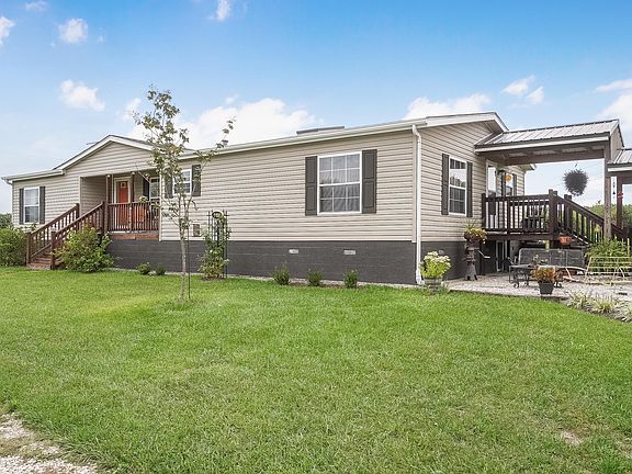 Lovely home sitting on approx 3+- acres in Rogersville School District. A covered front porch leads to the living room that features vaulted ceiling, free standing electric fireplace and access to a 12 x 12 deck. The kitchen has a skylight, island and pantry. The 3 bedrooms are nice size with 2 having walk- in closets. Outside, you will find a, storage shed (she shed), storm shelter, and a covered patio area leading to a new 40 x 30 3 car detached garage. Extra features include a new roof in 2017 and washer & dryer remain with the home.
