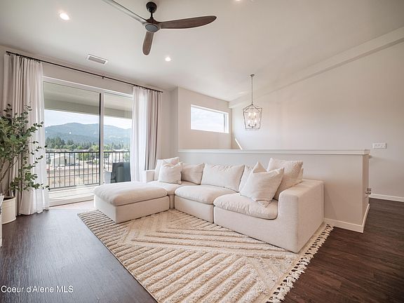 Better than new townhome-style condo includes new refrigerator, washer & dryer, and seller is offering $5k credit toward buyers' closing costs! Furniture is negotiable. This condo features beautiful finishes like white quartz countertops, soft closed kitchen cabinets and drawers, full tile backsplash and LVP flooring through main living and wet rooms. Located in the Garden phase at Millworx, this townhome is tucked off the main road along a community greenspace with southern exposure, mountain views and easy access to the community garden and dog park. Vaulted ceiling in the main living area, and an 8ft tall oversized slider door makes it light and bright. Slider opens to a covered composite deck. The Primary Bedroom has a large walk in closet, en suite with quartz counters and tile wall shower w/ glass doors. Close to shopping, dining, waterfront parks and I90 for an easy 12 min commute to DT CdA, or 20 mins to DT Spokane, 30 mins to Spokane Intl.