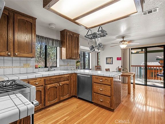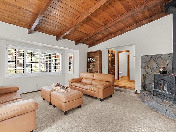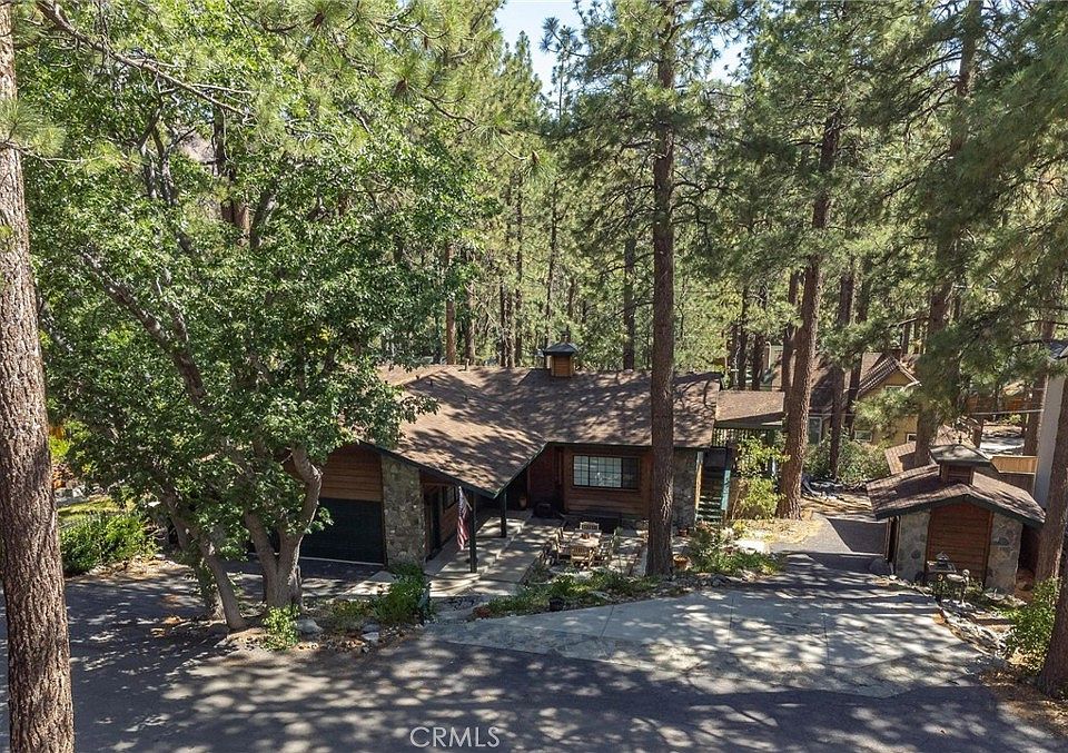Welcome home to mountain living or home away from home. Whether this is your full-time residence or a second home you will fall in love with the house, the location and the community. The unique stone inlay flooring invites you into the beautiful three bedroom and three bathroom home. Main level amenities include a large spacious living room with plenty of natural light to show case the wood ceilings and the cozy wood burning stove, kitchen and deck right outside of the dining room. Downstairs there is the 3rd bedroom, full 3rd bathroom and living room or space for an office, gym, or separate living area as it has its own entrance. 2 car garage with direct house entry. This home doesn't lack storage, with its own workshop, and separate storage out-houses full of potential uses - potting shed, man-cave, she-shed, office or extra storage areas. This home offers endless potential to become your dream mountain home, your home away from home or potential income property. Located in the "Birds" streets area of Wrightwood close to all mountain activities, winter skiing, spring and summer hiking trails and minutes to downtown Wrightwood.