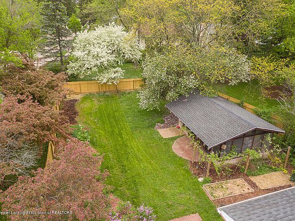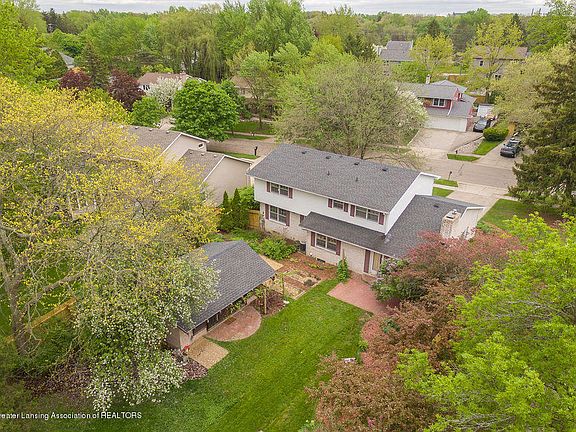 Spacious 5br Colonial with unique backyard pavilion and established organic gardens in desirable Shaw Estates. Awesome location - walk or bike to the brand new Glencairn school, downtown East Lansing and MSU; easy access to Lansing river trail and the north tier trail. Home is filled with natural light and features hardwoods, a cozy fireplace, gorgeous built-in shelving and a huge screened backyard pavilion for entertaining. Generous, sunny yard with easy-care perennials, raised beds for gardening and many unique plantings including grapevines, raspberries and hop vines. Basement has an workshop and well-lit art/craft workspace with built in work bench and storage. A welcoming, lovely home in a tranquil setting.