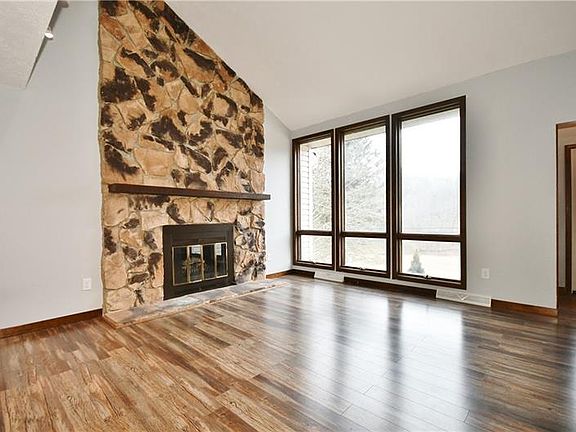 Contemporary Living in a Country setting. A turnkey home with generous living space. The large living room offers lofted ceilings with floor to ceiling windows that showcases the beautiful location and floods the space with natural light. A tall stone gas fireplace is the focal point of the living room adding warmth to the neutral decor. Luxury vinyl floors span the layout of the main level in trendy tones. The L shaped kitchen has solid wood cabinets, new appliances and walks out to the newer deck. The second floor over looks the 2 story living room, the generous master bedroom features an en-suite, plus 2 more bedrooms with new beige wall to wall carpet. The lower level is finished and HUGE with a large game room, wood burning stove, separate laundry room and half bath. A 2 Car attached garage makes it easy to unload groceries and features access to unload wood to the lower level! Don't miss this opportunity!