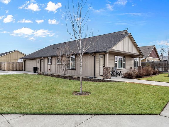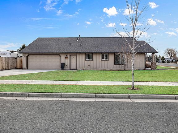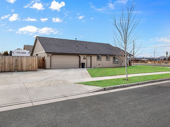 Better than new! This meticulously maintained home in the heart of Redmond Oregon sits on a desirable corner lot with stunning mountain views from the covered front porch. The open-concept design features alder cabinets, quartz counters, a large center island, full tile backsplash, and stainless steel appliances. The spacious great room offers a cozy natural gas fireplace and vaulted ceilings. The primary suite boasts a tray ceiling, dual sinks, a walk-in shower, and a walk-in closet. A split floor plan provides privacy, with spare bedrooms down the hall. Convenient laundry room with upper and lower storage cabinets. The oversized double garage includes, mats perfect for creating a workshop/gym area as well as a pull-down attic storage area. Enjoy a fully fenced yard, an RV pad with power, and a spacious patio for entertaining, garden box side area. Comfortably equipped with forced-air natural gas and central A/C. Don't miss out on this exceptional home!