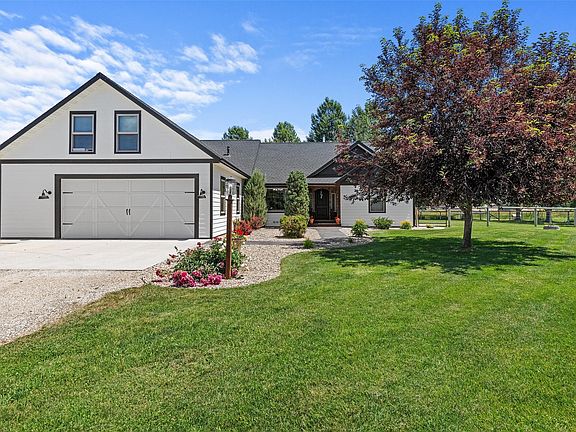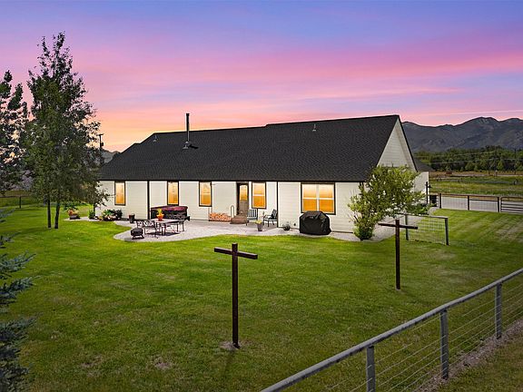 You will love this Bitterroot Valley home with 5 bedrooms 3 bathrooms with just over 2500 sq.ft. on 5 acres built in 2008. The Exterior was recently re-painted and the new detached barn is set up for vehicles, your Montana toys, or hay equipment. Inside this beautifully designed home, there is an open concept dining room, living area, and kitchen. In the living area, unwind and relax by the cozy wood-burning stove. The kitchen boasts modern wood cabinets and updated appliances! The master bedroom is set up for relaxation and the master bath boasts elegant finishes and a spacious shower, while the closet provides ample storage for all your wardrobe needs, accommodating Montana's ever-changing seasons. Upstairs you'll discover a versatile bonus room currently utilized as a game room and office. Outside is a fully fenced backyard with a patio and hot tub. The remaining acreage is currently hayed by a local farmer. Contact Lyric Johnson at 406-381-2245 or your real estate professional.