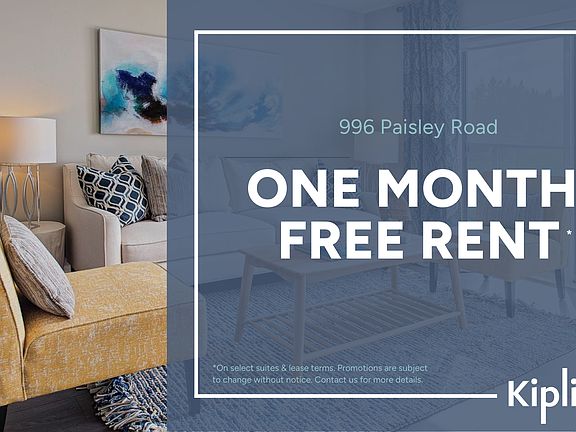 AboutReceive 1 Month Free Rent!*Welcome to 996 Paisley Rd, part of the Paisley Square rental community in Guelph's west end. This modern low-rise offers bright, open-concept suites with in-suite laundry, stainless steel appliances, and private balconies in select units.Enjoy convenient living steps from shopping, parks, and transit, with Costco, Zehrs, and the West End Community Centre just minutes away. With on-site parking, secure entry, and professional management, 996 Paisley Rd combines modern comfort with a relaxed, community-oriented atmosphere.*Promotions are subject to change without notice. Contact us for more details. Offer for new residents only