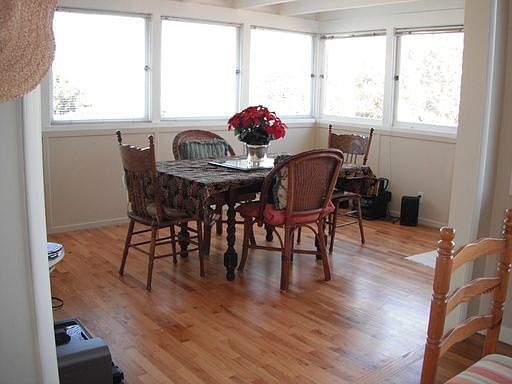Wonderful quiet neighborhood on the north end of Monterey with view over the rooftops of the bay. Two level home. Main level has living room with fireplace, dining area, office/playroom with windows on all sides, kitchen, two bedrooms and a great updated bath. Main level is all hardwood floors. Lower level is carpeted and has additional two bedrooms and bath. Family room with fireplace, and workshop/ storage room. Single car garage with opener. Great yard on several levels. View over housetops. The house is light and bright and in tip-top condition. Appliances include: gas stove, refrigerator