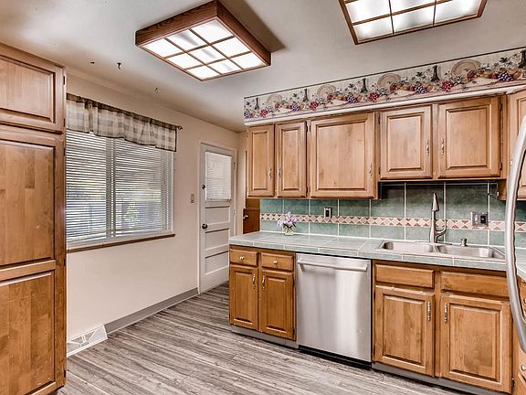 This updated brick ranch features 5 bedrooms and 2 full bathrooms. The large living room boasts a tile entry and refinished hardwood floors. Check out the spacious kitchen and breakfast nook. Kitchen features include new laminate flooring, new stainless steel appliances, updated cabinets, tile counters, and custom tile backsplash. 3 large bedrooms and an updated full bathroom complete the main floor. The full basement offers a family room, 2 bedrooms, a bonus room, large laundry/utility room, and a remodeled full bathroom. The family room has new laminate flooring and the bedrooms have new carpet. Step out the back door to the covered patio. The huge fenced yard backs to a greenbelt and bike path. Don't forget to look at the over-sized 2-car detached garage! This home's ideal location is close to shopping, restaurants, highways, public transportation and Cherry Creek Schools.