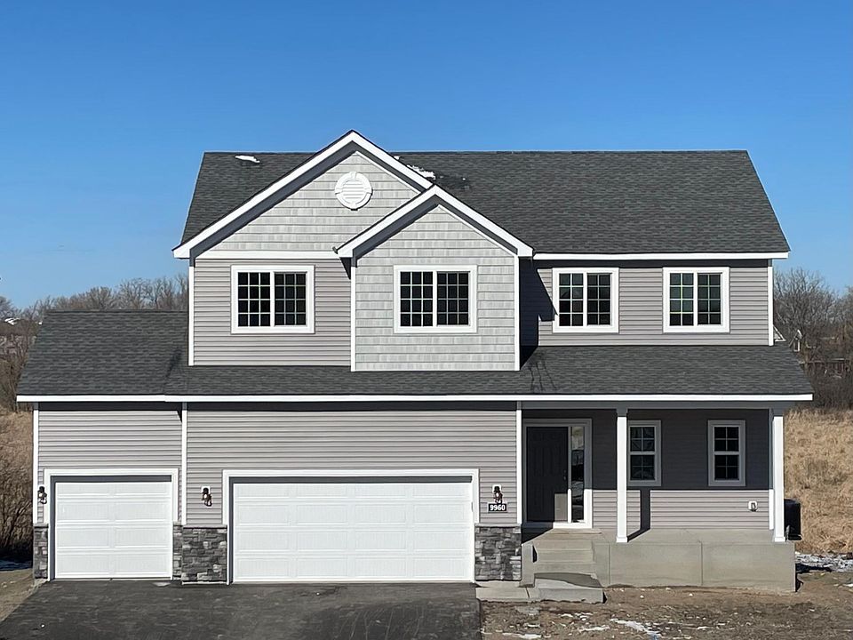Completed New Construction Home ready for move-in! Pristine homesite offers backyard nature views. This well appointed two story features an unfinished walkout lower level, spacious concrete front porch, Pella windows, stone accents, sod, irrigation system, & front yard landscaping. Main level highlights include 9' ceilings, inviting foyer, half bath, great room with fireplace including mantle surround & stone accents, decorative stair rails, kitchen walk-in pantry, large center island, mudroom with walk-in closet, & LVP flooring. Upper level features a spacious primary suite with deluxe bath including tile shower with separate soaking tub & double sink vanity, 3 additional bedrooms, loft, laundry room, and another full bath. All measurements are approximate.