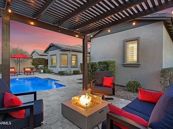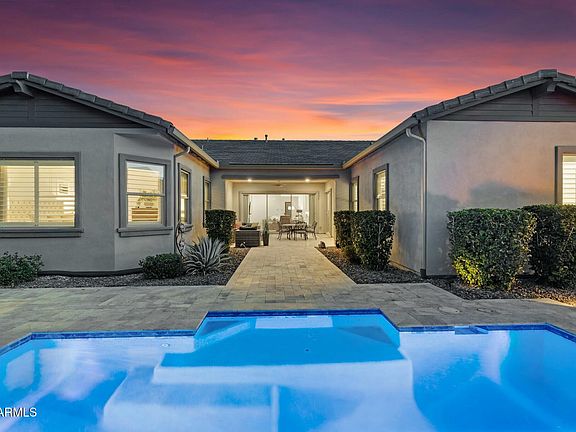 Step into a home that feels straight out of a designer magazine in the heart of Eastmark! Every inch is upgraded, from the kitchen with a grand island & custom cabinetry to the spa-like primary bath with an oversized walk-in shower. The open-concept layout invites warmth & connection, effortlessly flowing into the sunlit living space. A large wall of glass opens to your personal retreat—an extended travertine patio, sparkling pool, & a soothing water feature that creates the perfect backdrop for unwinding. When guests come to visit a rare private casita offers the perfect blend of comfort & privacy. Imagine hosting friends & family with ease, creating lifelong memories in a home designed for effortless elegance. Every detail speaks to style, sophistication, & the lifestyle you deserve.