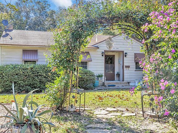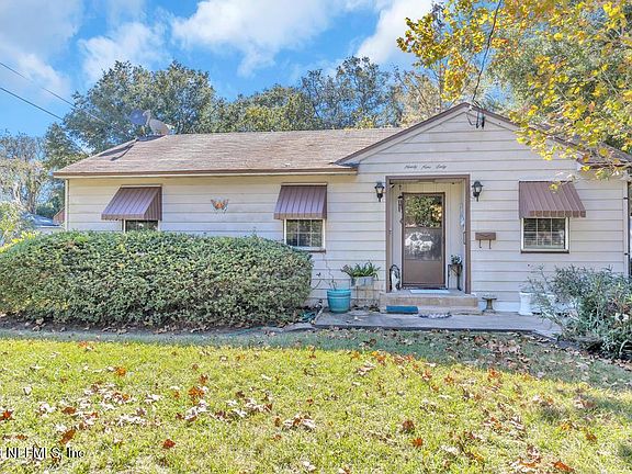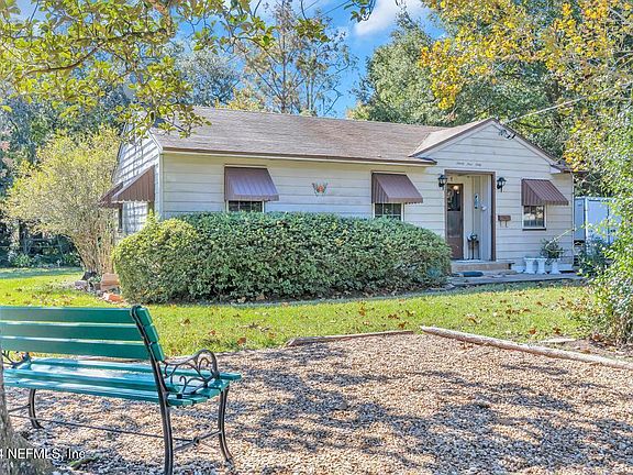 This adorable quaint and cozy 3 BR 1.5 BA home sits on a large 0.35-acre lot with tranquil wooded views in the back. Home features lovely fireplace and sunroom. Florida peach, Meyer lemon navel orange and fig trees refines this generously sized peaceful property. Situated just minutes away from shopping and dining in the heart Jacksonville's Southside area, this home gives you the perfect balance of privacy with a quick drive to fun and excursion. NO HOA and NO CDD fees. Make your plans to see this gem soon. Don't let this one get away!