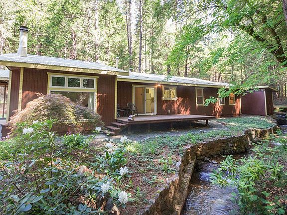 Wow! Get away from the heat and relax in your perfect little hideaway! This home is secluded and is move in ready. You can enjoy the year round stream while resting on your cool deck over looking the little waterfall. Or cozy up to a fire in your sunken living room. Or have some fun projects in your garage/workshop. Or use the little place on the hill as a guest cottage, or a storage, and root cellar. What a place to use as a vacation home or as your primary residence. Its perfect, peaceful, Private, sunshine, and Apples from well established trees. The best part is the home stays very cool inside too! No more Hot days! There is something so majestic about this place! Don't miss it!