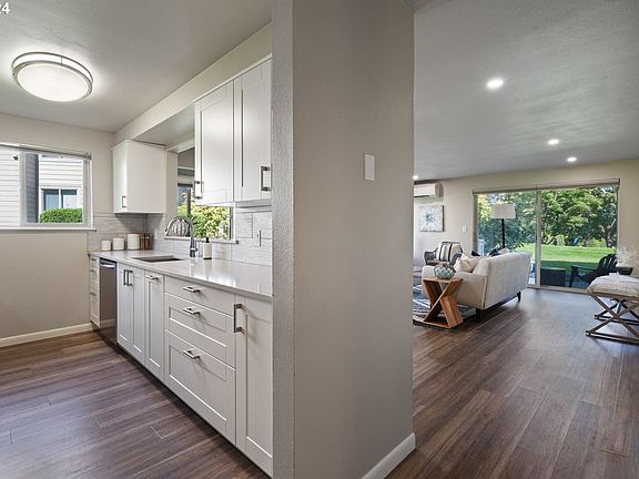 Totally Renovated one-level condo in the beautiful “On the Greens” community! Spacious and open floor plan features windows on three sides, a wood burning fireplace with new tile surround, two bathrooms, two large bedrooms, in-unit laundry, and ample closet space. Kitchen updated with new cabinets, quartz counters and induction range; Remodeled bathrooms with new vanities and fixtures; new paint and luxury vinyl plank floorings throughout. New mini-split and hot water tank. Enjoy evergreen views of rolling lawn from covered patio (and don’t miss attached shed). Covered parking, plenty of additional guest parking and option for RV or boat storage. Well managed HOA with lots of perks including swimming and tennis. Walk to Whole Foods, Restaurants, Cafes, the Fanno Creek Trail System which goes from SW Portland to Tigard through green space and parks the whole way. No rental cap!