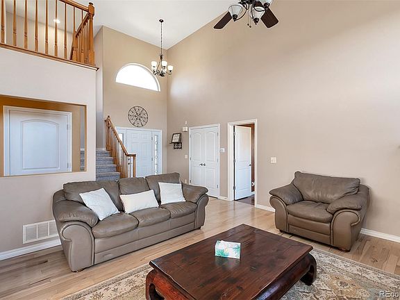 Beautiful two story corner lot home in Todd Creek. Easy commute to DIA and Boulder. This property sits on 1.22 acres of private open space, plenty of room to build your out barn. Spruce pine and aspen trees bring seclusion to this wonderful home. 4 bedroom, 4 bathroom, with 4 car over sized garage. Wrap around Trex deck, new roof with 50 years warranty, new gutters, new exterior paint, new digital sprinkler system, and fully landscaped with complete ground outdoor lighting. Main floor has beautiful oak plank wood throughout. Towering cathedral ceilings, gas fireplace and multiple windows bring in lots of natural light. What a stunning kitchen!... Huge granite slab counter with beautiful stone siding, LG stainless steel appliances. Main floor master bedroom shows well with marble wood floors, granite double sinks, over sized tub and beautiful rain-glass shower with double massage shower heads. Fully finished basement includes another master size bedroom with beautiful scratch proof flooring throughout. Beautiful bathroom with step-in doorless shower. Granite bar has sink and built-in wine cooler for game night entertainment. This beautiful home comes complete with a high security system and an unbelievable HOA of only $5 per month.