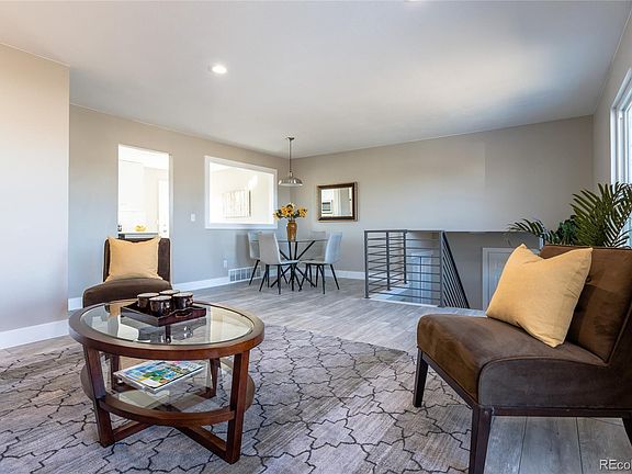 Impeccable modern design with urban flare. Nothing comes close to this home in this neighborhood. Want to have the nicest looking house - go no further! *Kitchen is to die for - new high end trendy shaker style 48" two-tone kitchen cabinets with soft close dovetailed drawers, quartz counters, designer tile back splash, upgraded faucet, new stainless steel sink, new stainless steel appliance package with a french door refrigerator*Water and scratch resistant silver oak woodlike flooring through the main level creates continuity, combined with open modern kitchen, the space is big enough to entertain a large number of guests. Modern dark metal designer light fixtures add to the atmosphere of urban chic and contemporary horizontal metal railings complete it perfectly. The same theme is carried out through out the entire home and expressed in soft grey interior colors, white and charcoal bathrooms design with new porcelain tile, new vanities, fixtures etc..*New windows, trim, trendy 5 panel doors, fixtures, new roof, electrical panel, garage door etc..* Bold exterior blues and orange colors present a challenge to the houses around to shape up!* Location is hard to beat. 5 min drive from Great Plains Park and E-470. On Jewell/Illiff you will find any amenity needed. Schools are less than 5 min drive away. Do not miss this one!