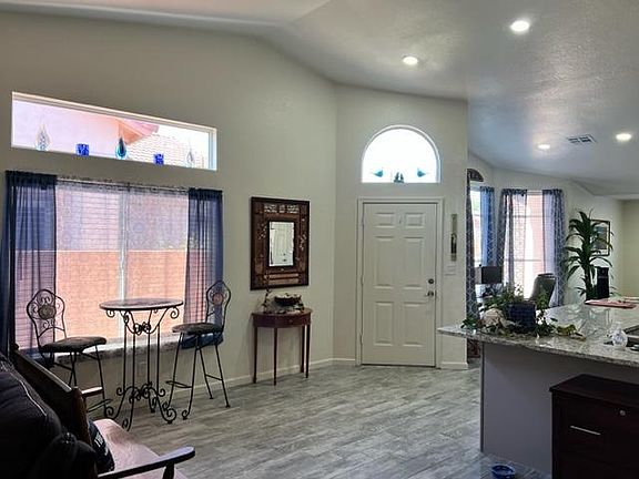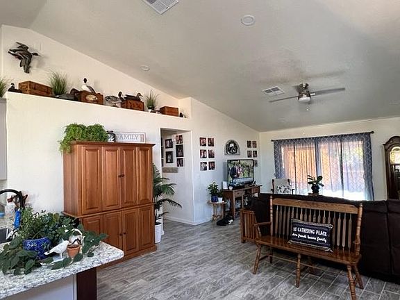 Charming North Ranch home with 3 bedrooms/2 baths, updated plank flooring thru out home, huge kitchen with granite countertops and gas stove, stainless steel refrigerator, nice size dining room, large great room to enjoy. 2 car garage and nice covered patio complete the picture.