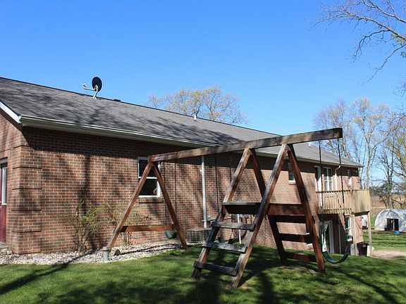 Beautiful brick home with a setting overlooking forest and fields! 3 bedrooms, 2 full baths. The home was built in 2003, seller is a mason by trade and you can see his beautiful handy work though out the exterior. The homes basement has 9' 4" ceilings and is built to withstand just about anything. There is also a "cozy heat" wood burning fireplace that heats the home well in the cold winter months. (Sellers go thru 1 tank of propane per year, and there is one seasons worth of wood that comes wit h the home) Underground sprinkling will make lawn maintence easy. There are raised garden beds in the front yard FULL of strawberry plants, also on the property is an Apple, Nectarine, Pear and peach tree, along with black berries and raspberry's