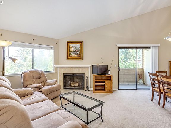 Well appointed, top floor, corner unit, condo w/open great-room floor plan, boasting vaulted ceilings, wood burning fire place and slider off dining room to private patio. Drenched in natural light. Spacious master bedroom w/full bath w/dual sink vanity. HOA includes garbage, water, exterior maintenance, gym, pool and hot tub. Near Clackamas Town Center, shops, restaurants, entertainment, and public transportation. Easy freeway access.