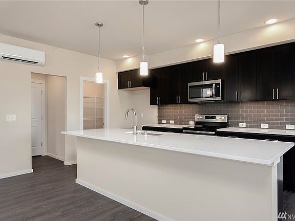Contemporary, 2-story townhouse at Materra by Conner Homes, part of the Greenbridge master-planned community close to parks, schools, d/town Seattle & SEATAC. Features AC, attached garage, Great Room concept with beautiful Kitchen, soft-close Espresso cabs & drawers, under cab. kit. lighting, walk-in pantry & large Dining & Living Areas & Deck. Upstairs, Master Suite w/bath & walk-in closet, 2 more beds, full bath, loft & laundry w/sink. Landscaped yard.